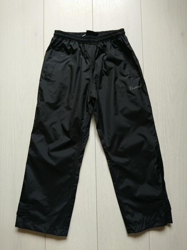 Непромокаемые брюки в идеальном состоянии Материал полиэстр Размер 6 на рост 116-122 см ю Низ штанки на липучке Длина 74 см Крок 50 см ПОП 26 см и тянется до 42 см на резинке ПОБ 46 см Ширина штанки в низу 19 см и стягивается липучками