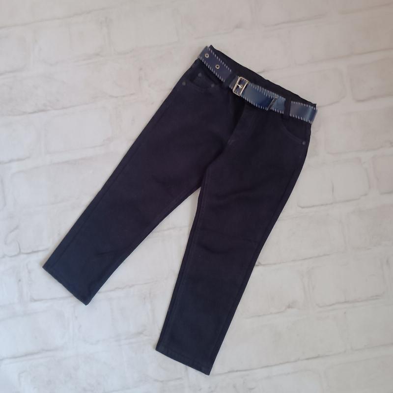 Штани темно-сині на флісі. На блискавці, пояс із резинками-регуляторами. Пояс в комлекті. Туреччина. Розмір: 📌7 років (122 см): пояс 30 см, НОС 38 см, довжина 66 см, крок 45 см. Колір: темно синій.