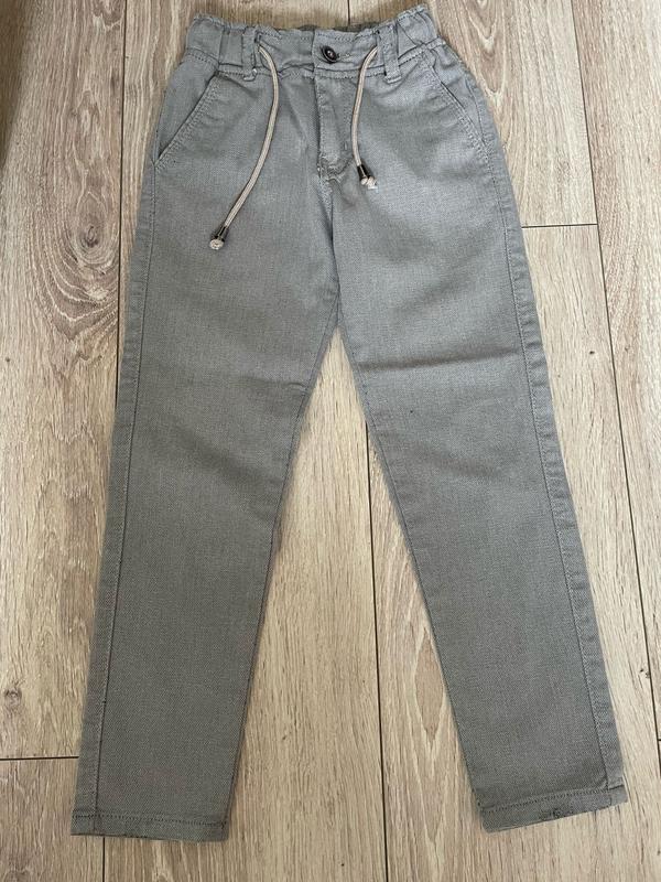 Стильные брюки для худи мальчика. Весна / лето. Размер 122. Производство Турция. Состав : 82% хлопок, 8% лайкра, 10%полиэстр Длина по боковому шву 70см Пояс в свободном состоянии 24см, растянутом 30см