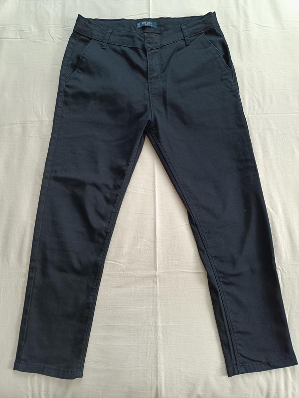 Брюки темно-синего цвета. Тянутся не сильно. Все замеры на фото.