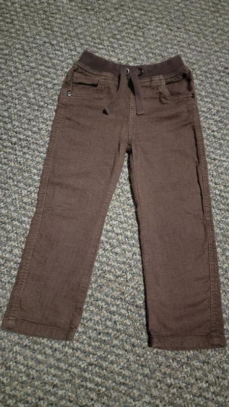 Такой классный шоколадный цвет и интересная структура в "елке" 1,5-2 года, согласно бирки. Сын одевал позже Замеры: длина 54 см, шаговый 37,5 см. талия 21 см.(можно потянуть до 25 см) бедра 29,5 см.