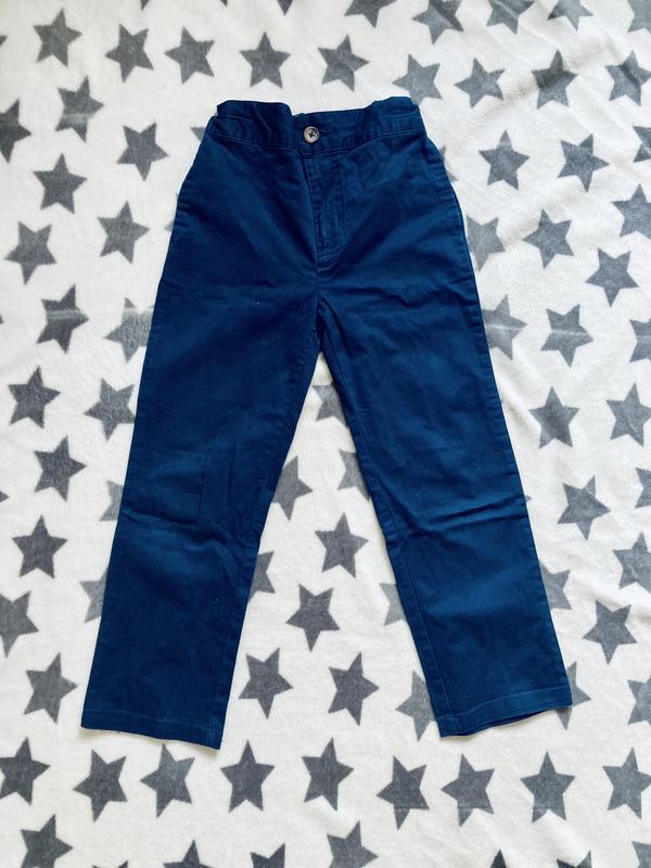 Классические детские брюки Andy & Evan. Крой прямой. Застежка: пуговица и молния. По бокам два кармана, сзади карманы-обманки. Талия регулируется резинкой. Замеры: Длина 60см Крок 41см НОТ 27см СТАН НОВИХ