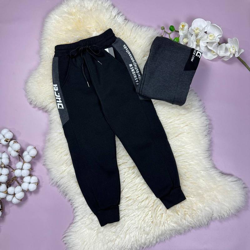 Всередині начос. В поясі резинка гарно тягнеться. Є куліска та кишеньки. Склад тканини: 85% бавовна, 10% поліамід, 5% єластан. Заміри: 65 (110-116) - довж 63/крок 41 70 (116-122) - довж 68/крок 44 75 (122-128) - довж 71/крок 47 80 (128-134) - довж 77/крок 51