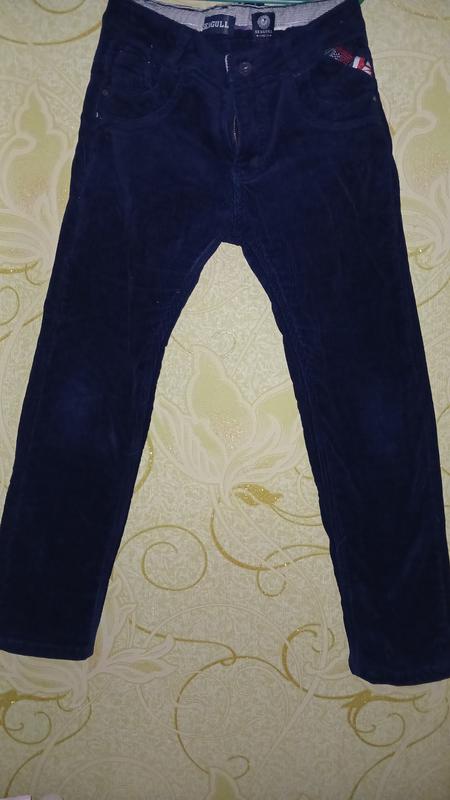 Теплі вельветові штани на хлопчика 10-12 років.Розмір 146 ,довжина штанки 89см.крок 65см.в поясі півобхват 40 см.Стан ідеальний.Темно синій колір.
