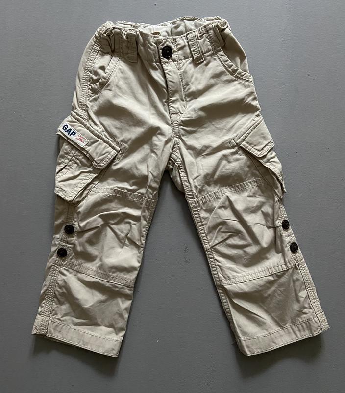 Коттоновые штаны для мальчика. Большие боковые карманы. Застежка : молния и крючок. Ширина по поясу регулируется внутренними резинками. Брюки можно превратить в длинные шорты ( 2 пуговицы и шлейка. Тоненькі.