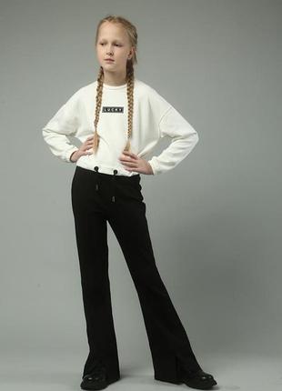 Брюки клеш от колена с разрезами 🔥 550грн 👉ткань: трикотаж Алекс турецкий 👉Хорошо тянется! 👉Высокая посадка, в поясе резинка 👉отличное качество! ВЫМЕРЫ: р.128 длина/шар/бедрен/пояс 79/59/35/25см р.134 длина/шар/бедрен/пояс 83/63/36/26 р.140 длина/шар/бедрен/пояс 86/66/37/27 р.146 длина/шаг/бедрен/пояс 92/68/39/28 р.152 длина/шар/бедрен/пояс 95/71/40/29см р.158 длина/шар/бедрен/пояс 98/75/42/30см р.164 длина/шар/бедрен/пояс 103/78/45/32см