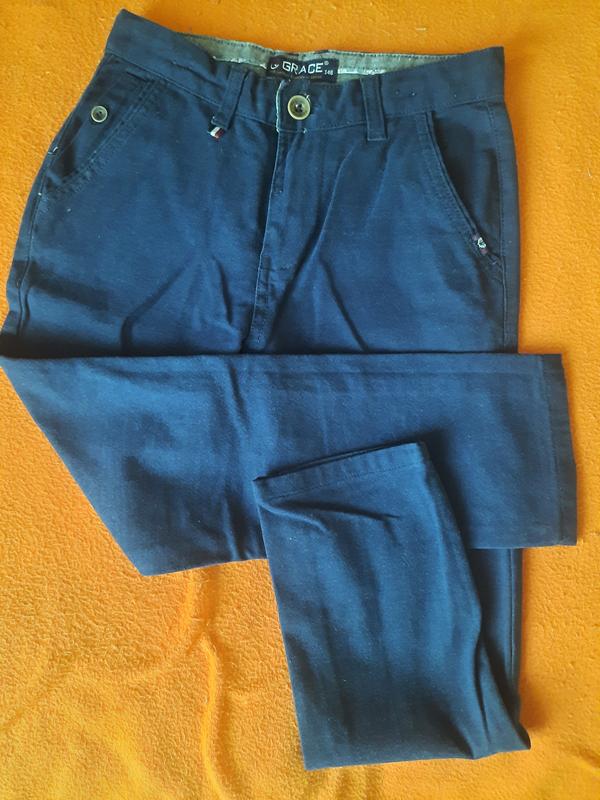 Классические брюки (синего цвета.) Стан идеален., было всего 2-3 раза. размер указан 146. но ориентироваться по замерам, тем более, что меньше..более подойдет 134 - 140...зависит от ребенка.