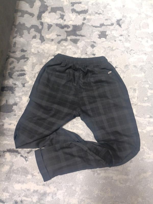 брюки легкие, укороченные очень приятные к телу,черные с темно серой клеткой