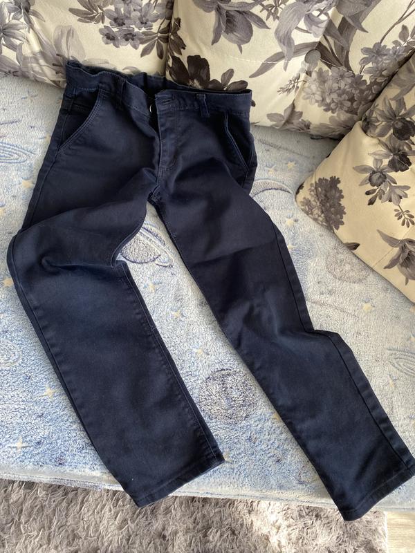 Брюки на хлопчика темно-сині. Об’єм у поясі фіксується.