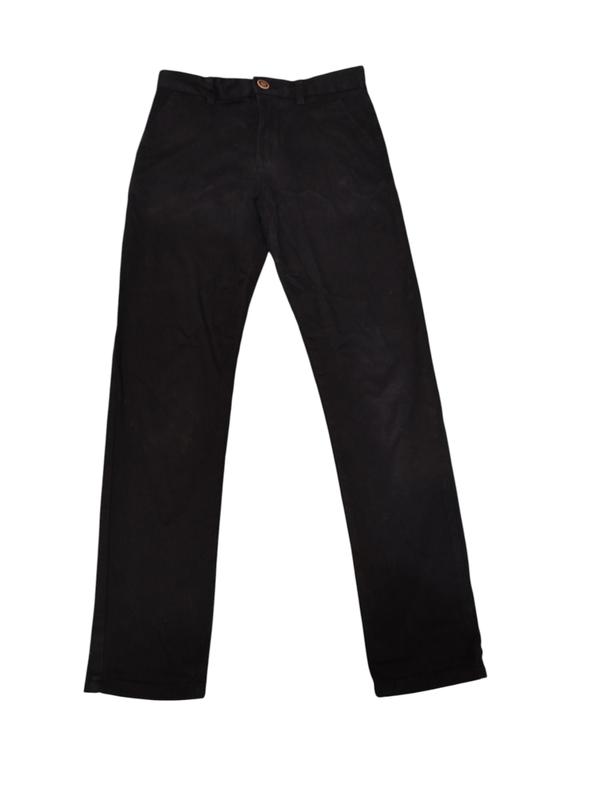 Стильные и качественные брюки черного цвета в очень хорошем состоянии есть практически незаметная потёртость на коленях на ребёнка 8-9 лет. Полуобхват по поясу регулируется внутренней резинкой на пуговице и максимально тянется до 33 см, высота посадки 22 см, длина по внутреннему шву штанины 62 см, длина по внешнему шву штанины 82 см. Ткань 98% хлопок 2% эластан, тянется. Модель 6418