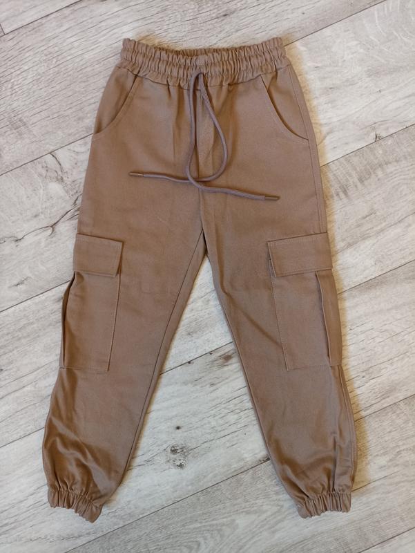 Бежевые джоггеры из плотного коттона, очень стильные 🔥 Имеющиеся размеры и замеры (внутренний шаг, ширина по бедрам, длина). Размер 122 - 52, 38, 76 Размер 140 - 62, 44, 86 Размер 164 - 75, 51, 102 Быстрая отправка Укрпоштой и Новой почтой.
