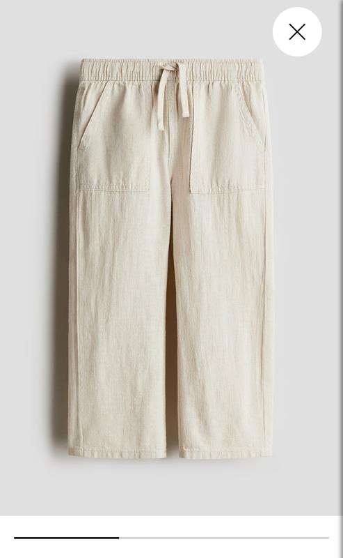 Дуже класні легкі лляні штани бежевого кольору в розмірі 116 см. Не вгадали з розміром на жаль 🙁