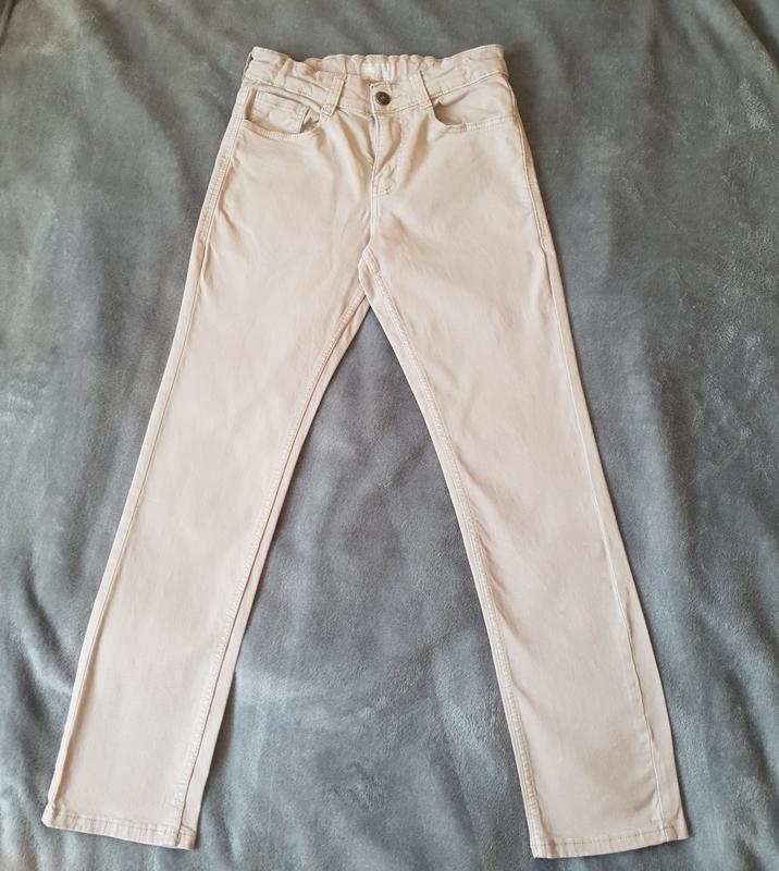 Брюки песочного цвета kiabi 10 р прямого кроя в идеальном состоянии, без царапин, потертостей и пятен. Пояс на утяжке, застежка кнопка. Длина 85 см Крок 65 см Бедра 39 см Пояс 30 см, еще тянется.