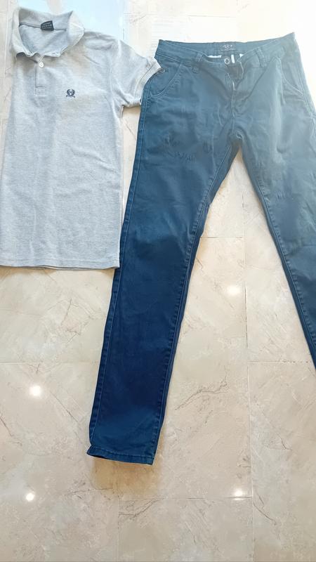Синие брюки для подростка + футболка поло в подарок. Состояние очень хорошее, идеально на обучение. Замеры брюк: Длина 100см, шаг 80см, ширина ПО 47см, пояс 35см.