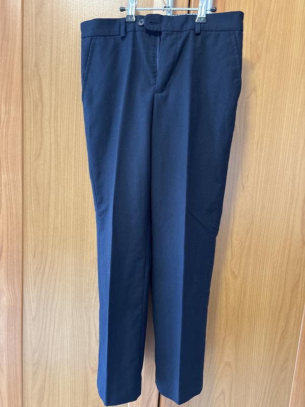 Класичні темно сині брюки для хлопчика. Стан нових! 🤩 Ідеальні в школу. Базові, «зі стрілками», зручні. Всередині є резинки для регулювання обʼєму. На зріст 140 см. Довжина брюк 82 см, ширина талії (пів обхват) 33 см, стегон 41-42 см.