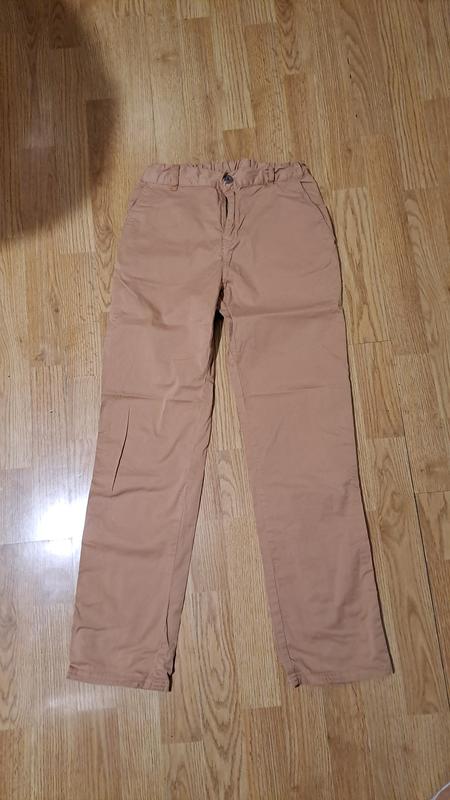 легкие котонновые брюки на подростка (158) пояс утяжка 31 тянутся, длин 94,шаг 69, бежевое 47