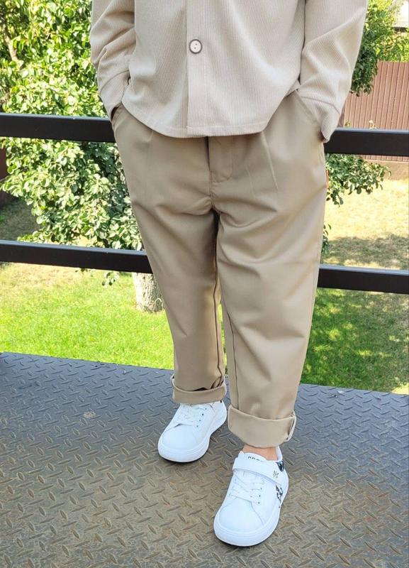 Класична модель штанів для хлопчиків - костюмна тканина - в поясі застібається на ґудзик та змійку - заді в поясі резинка - є 2 кишені - відмінна якість - ідеально поєднується із сорочками,можна зібрати костюм,туфлі також в наявності,повний образ в школу готовий Розміри 90-140
