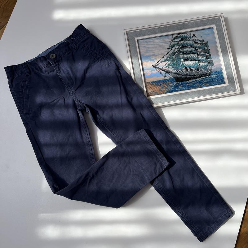 Котонові ткмно-сині брюки Tu на хлопчика 7 років. Є маленька дирочка зверху біля кармана( останнє фото)