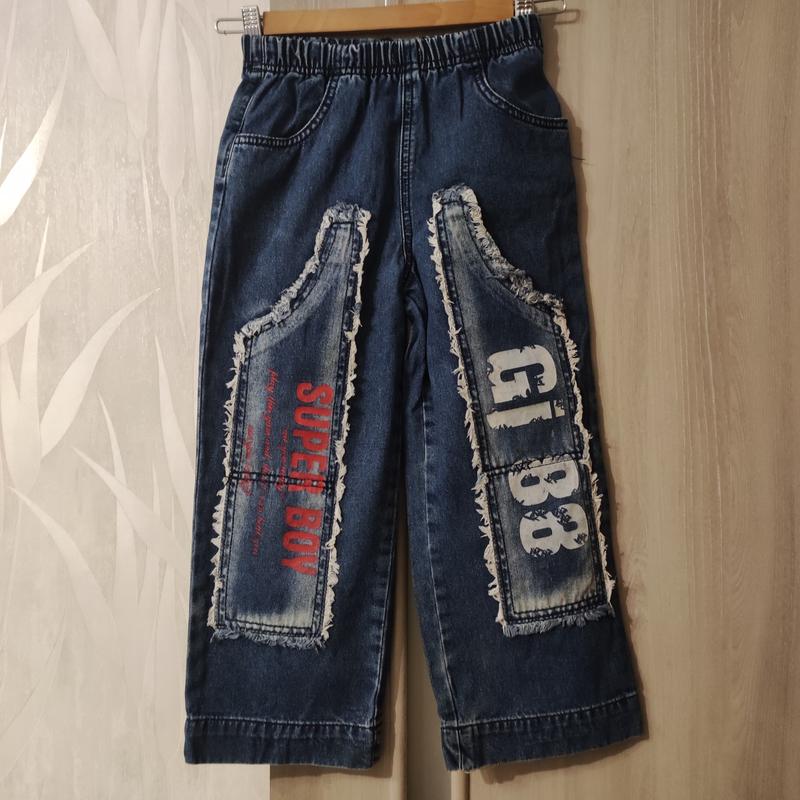 Джинсы детские на мальчика 5-6 лет, широкие джинсы с карманами Рост 110 см Длина 69 см