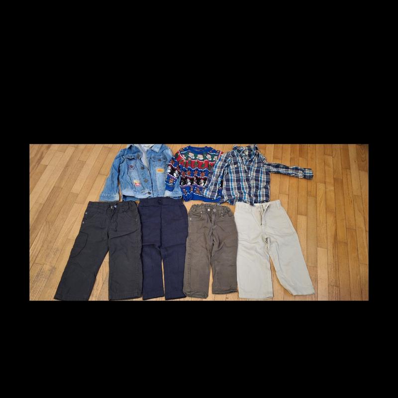 Набор одежды для мальчика 2-4 года на рост плюс-минус 104 см. Стан-хороший (без явных дефектов). 4 пары брюк, одна пара утеплены на флисе, джинсовка, светрик і рубашечка. Сделала пару замеров, так как размер один и не имеет смысла замерить все.