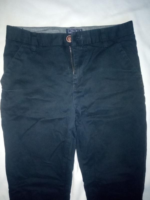 Качественные и коттоновые, тканые брюки с косыми карманами спереди, 2 сзади. Фирменные, все целое.Темно синего цвета.На бирке указан возраст 13, в по факту смотрите по замерам, сможете быть и на 11-12роков. длина 96см обхват по поясу 81см полхват бедер 45см штанина сверху полуобхват 25см снизу штанина 15см полуобхват.