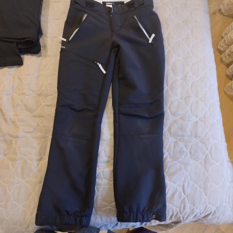 Детские туристические брюки Quechua MH500 из софтшелла. Теплые, водоотталкивающие и ветронепроницаемые брюки: идеально подходят для заснеженных походов. Эластичная ткань обеспечивает дополнительный комфорт. Пояс дополнительно регулируется. Ширина - 41 см, длина - 81 см, талия - 33 см. Утеплены микрофлисом. Есть дополнительные карманы. Есть следы естественной носки, незначительные на коленях и внизу штанины.