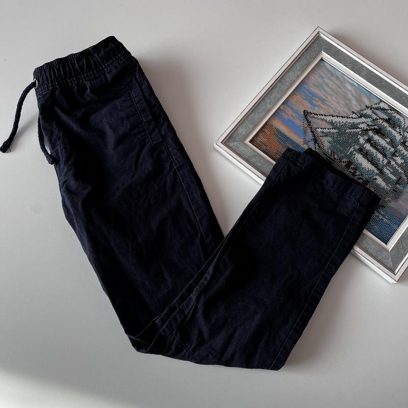 Котонові темно-сині брюки m&s 8-9 років. Пояс 31см, довжина 80см, крок 57см.