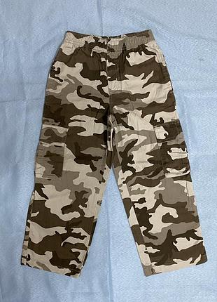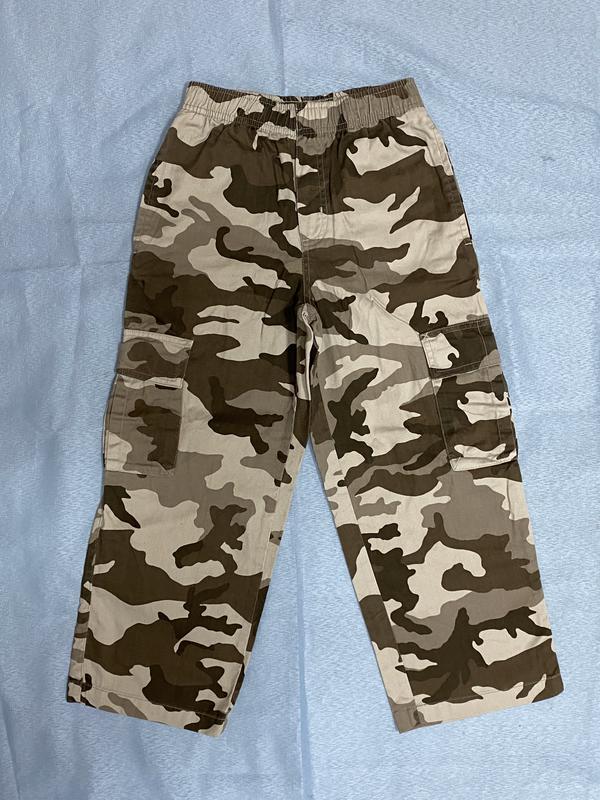 Штани камуфляжні дитячі американського бренду Basic Editions , вироблені в Бангладеш , матеріал : 100% бавовна ! В талії гумовий пасок , з боків накладні кишені ! Розмір:: 8 : ширина ( в талії ) - 27 см, ширина ( в стегнах ) - 40 см, довжина - 74 см, крокова довжина - 52 см, ширина штанини ( низ ) - 20 см .