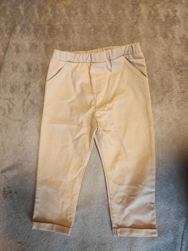 Хлопковые брюки на мальчика 86-90 см. В талии резинка,не регулируется. длина 52 см, крок 31 см, талия без растяжки 24 см. Ткань стрейчевая.