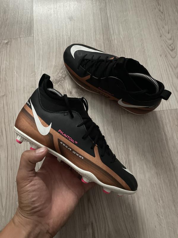 NIKE PHANTOM GT 2 CLUB DF MG GENERATION (Дитячі) Розмір: 37.5 (23.5 см) Колір: мідний / білий / чорний Стан: ідеальний 🌟 Дитячі футбольні бутси, створені для точності та контролю м’яча. Модель Phantom GT 2 має спеціальний текстурований верх для кращого зчеплення під час пасів і ударів, а комір Dynamic Fit забезпечує щільну посадку та комфорт під час гри.