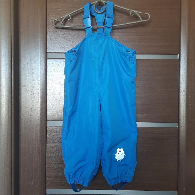 Грязепруф полукомбинезон Impidimpi для мальчика 86/92см. Утеплен флисом. Состояние очень хорошее- следы износа только на штрипках и светоотражателе, есть на фото. Довжина зі шлейками мін/макс 71/75 ПОГ 35 Довжина по боковому шву 53 Крок 31