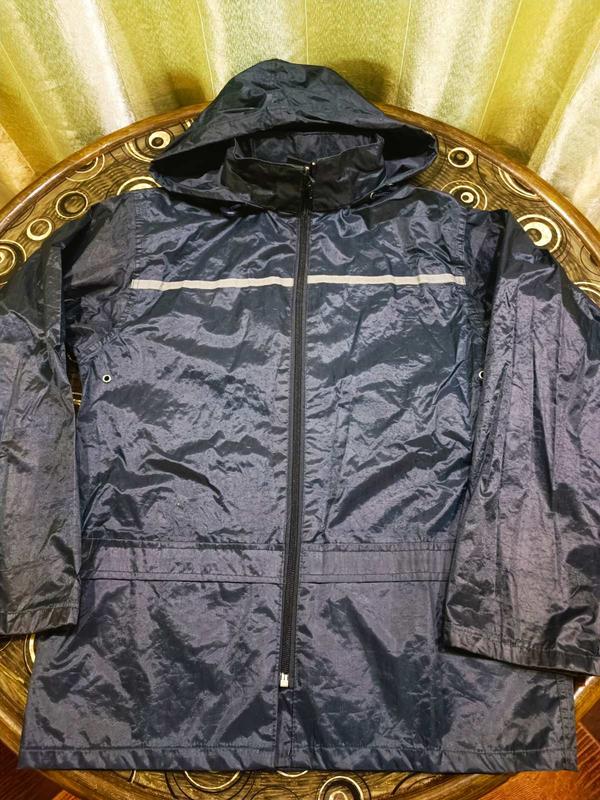 Дитячий дощовик із потайним капюшоном і світловідбивними смугами. М'який, не шарудить. На зріст 140 см. Заміри на фото.