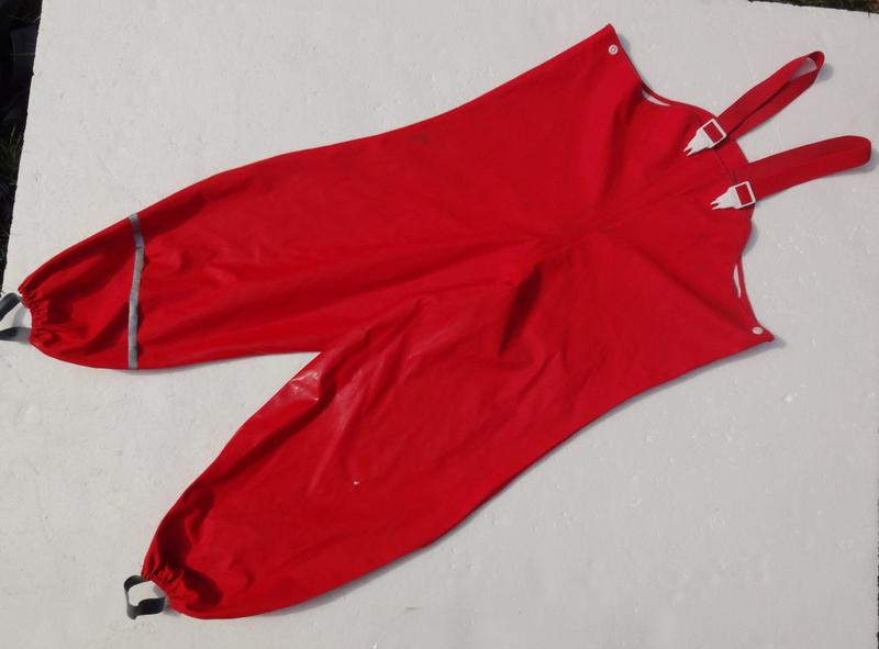 Прорезиненный полукомбинезон без утепления. Подкладка так же отсутствует как отдельная вещь. У него с изнаночной стороны трикотажная основа прорезиненного верха. О как!) Есть пару нюансов: дырка под левым коленом и пятна на пояснице. Отклеивается светоотражалка на штанине. Всё это учтено в цене. Потёртостей, царапин и других нюансов нет!!! На ощупь мягенькая и не дубовая резина. Не промокает. Швы все запаяны. Внизу пришитые штрипки резиновые, не регулируются... под мышками кнопки для лучшего прилегания по фигуре. Замеры: ширина вверху, где кнопки 47 см, при застёгнутых кнопках 40 см бёдра 45 см посадка спереди 41 см посадка сзади 45 см ширина штанины в паху 29 см ширина внизу 24 см, резинки 9 см длина по боковому шву 80 см шаговый 53 см 30% полиэстер,70% эластомер