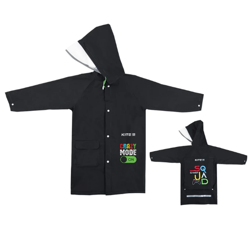 Матеріал EVA Розмір, см 70x46 Модель рекомендована для дітей зростом 115-130 см та має розміри 70x46 см. Плащ-дощовик дитячий Kite захистить від дощу дитину разом з її рюкзаком. Стильний та практичний аксесуар збереже одяг сухим та подарує відчуття комфорту. Він не сковує рухи та дарує свободу пересування. У дощовику можна ходити в дитячий садочок чи прогулюватися під дощиком, не боячись намокнути. Плащ-дощовик з капюшоном виконаний із щільного матеріалу EVA, зносостійкого та водонепроникного. Він легенький, компактно складається та займає у рюкзаку мінімум місця. Особливості: Легкий та зручний – надійно захищає від дощу та дарує відчуття комфорту. Водонепроникний EVA-матеріал – зносостійкий та міцний. Функціональна кишеня-чохол на спинці – для комфортного розміщення рюкзака під дощовиком. Застібка на кнопках – зручна та практична. Капюшон із прозорим козирком фіксується шнурками. Світловідбивні елементи на спинці та капюшоні – щоб дитину було здалеку видно у темну пору доби. Рукава з регульованими манжетами на кнопці. Водонепроникний чохол – для зручного зберігання. Трендовий дизайн – щоб виглядати стильно та мати відмінний настрій у будь-яку погоду.