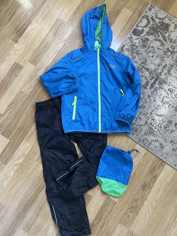 Комплект на размер 122-128. Штани не вдягали. Куртку использовали как ветровку