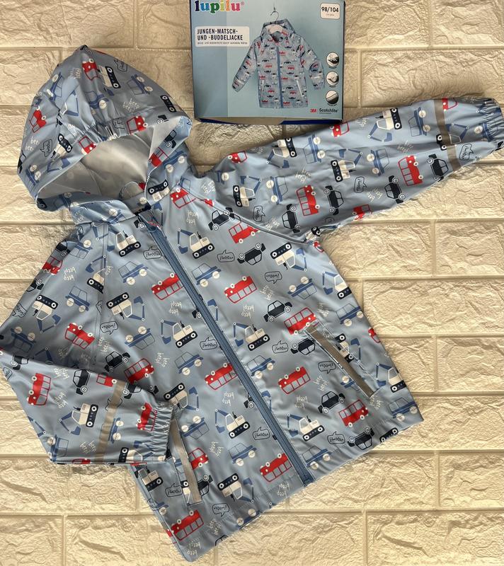 Куртка, грязеприф, дождевик без утеплителя Lupilu (Германия) Размеры: • 98-104 (2-3 года); • 110-116 (4-6 лет). Благодаря современной экологической технологии BIONIC FINISH ECO грязеприффы обладают ветрозащитными, водонепроницаемыми и дышащими свойствами, а также грязеотталкивающим покрытием ткани. Не требует стирки, достаточно протереть влажной губкой. Основные характеристики: - ветро-водонепроницаемая ткань, грязеотталкивающая (прорезиненная, полиуретановое покрытие); - герметичные, проклеенные швы; - светоотражающие элементы.
