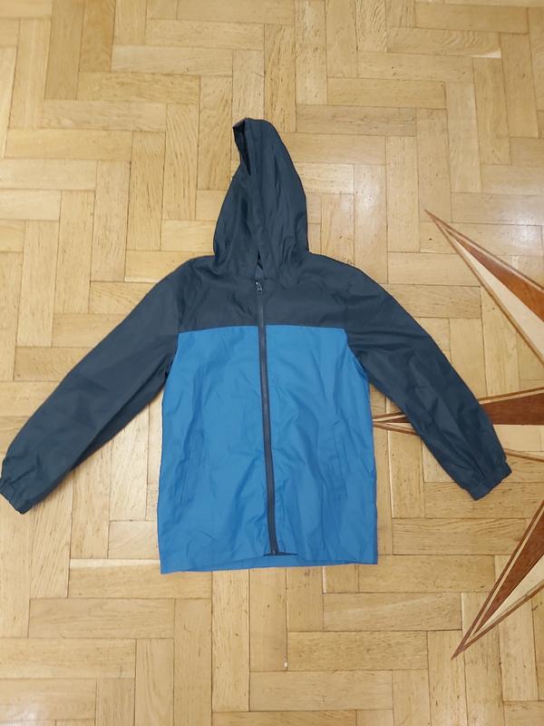 куртка ветровка дождевик бренда Nutmeg на 9-10 лет 134-140 см сзади карман на липучки, складывается в компактную сумочку. по недостаткам на одном из рукавов имеется пятно (фото)