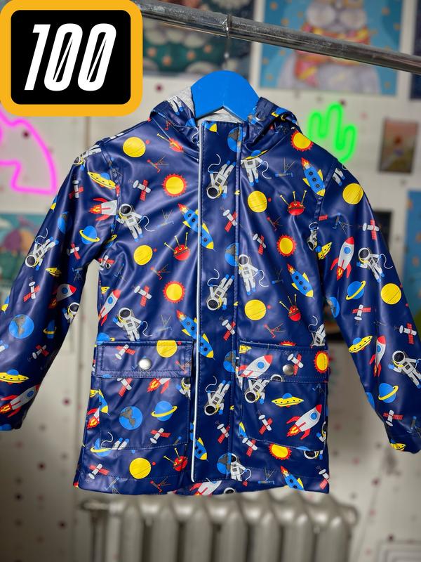 Яскравий та якісний дощовик із капюшоном. Матеріал водонепроникний, прогумований, легко миється та надійно захищає від дощу. Має зручні накладні кишені на кнопках та застібку-блискавку. Дизайн з ракетами, планетами та астронавтами точно сподобається дитині 💫 Стан відмінний, без плям та пошкоджень. Ідеально підійде для дощових прогулянок восени чи весною. 🧩 Зовні – поліуретан/поліестер, всередині – поліестер. 🏷️ Розмір 98–104 см. 💰 Ціна – 350 грн. Заміри за запитом 🫶🏻
