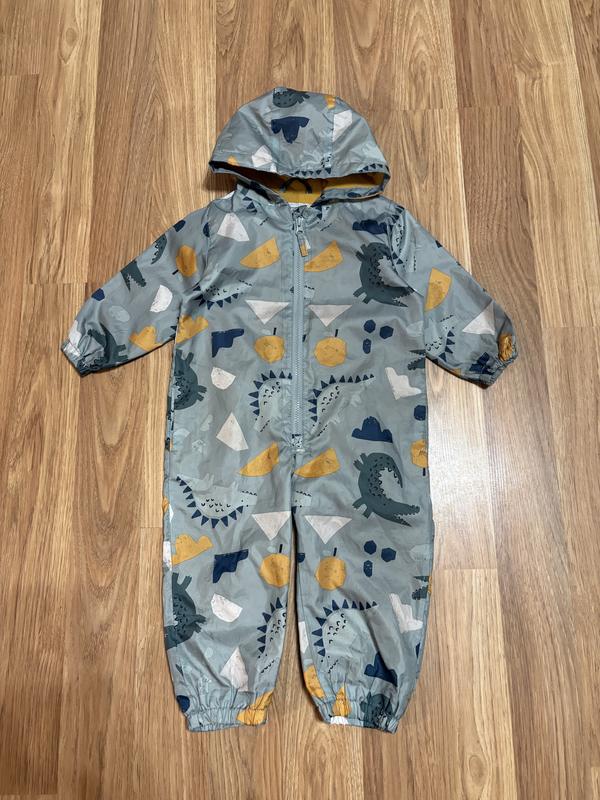Комбінезон/дощовик стан ідеальний. Гарний принт із динозаврами. Фліс на капюшоні. Довжина 76см, рукав від плеча (шва) 31см, крок 28,5см.