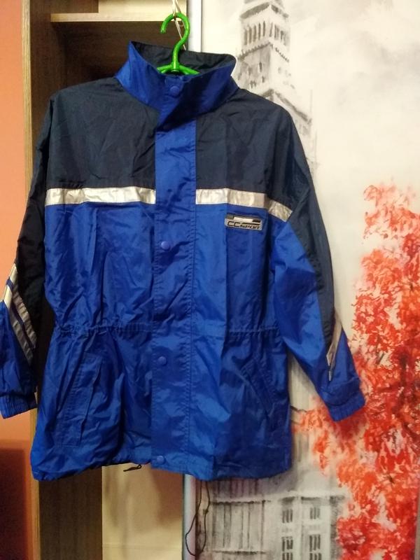 Спортивная куртка дождевик со светоотражающими элементами. Капюшон прячется под воротник. Талия и низ стягивается.