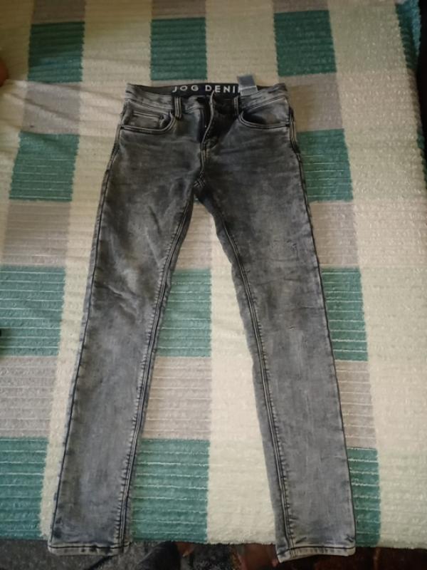 підліткові плотні джинси, тягнуться,місцями є потертості,на носіння не впливає,розмір 164