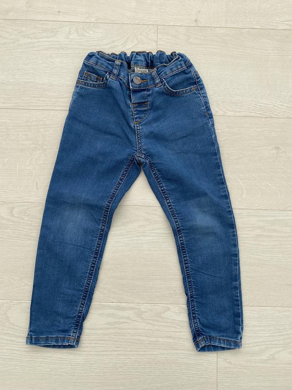 Хороша якість , в чудовому стані. Тонкий джинс, тягнуться . Вік вказаний 3-4 роки, зріст 98-104 см. При потребі заміри додам.