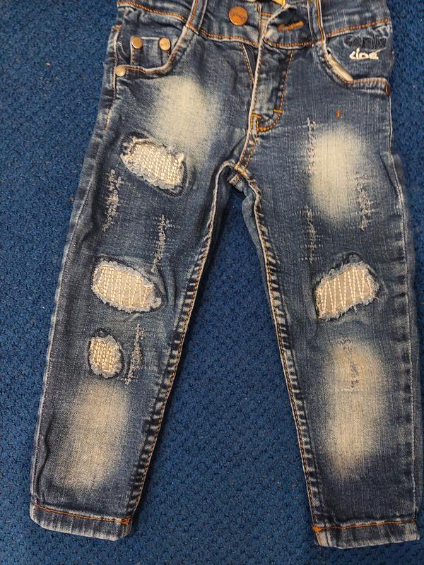 Современные джинсы на мальчика 2-3 лет. На поясе есть резинка для затяжки Длина от пояса 47см Крок 30см Стан - идеальный