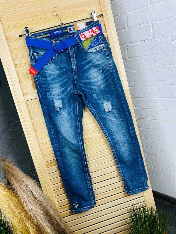 Шикарные стильные джинсы производство Венгрия. Прямого кроя есть утяжка, пояс в подарок 85% бавовна 15% полиэстер арт F3059 р134-3шт р140-2шт р146-4шт р152-1шт р158-2шт р164-6шт