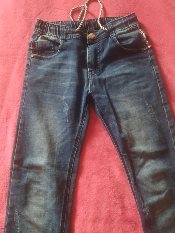 Джинсы на 146-152, пояс на резинке+ шнуровка, внизу зауженные