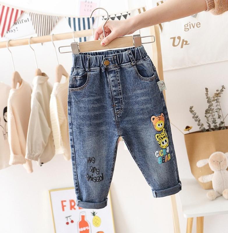Джинси матеріал-джинс пояс-резинка Заміри: р.80 - довжина 48 см, кроковий 26 см, стегна 32 см р.100 - довжина 57 см, кроковий 35 см, стегна 34 см р.110 - довжина 62 см, кроковий 38 см, стегна 35 см р.120 - довжина 69 см, кроковий 44 см, стегна 36 см р.130 - довжина 72 см, кроковий 47 см, стегна 36 см