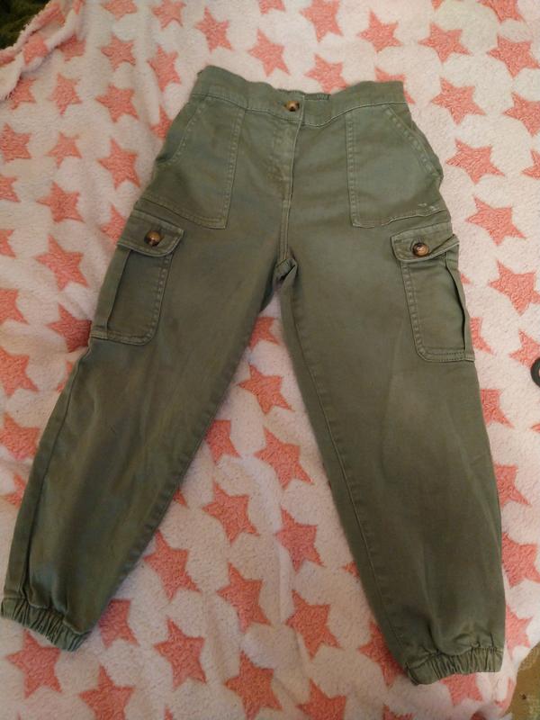 цвет хаки является нюанс в виде пятен (выводить не пробовала) указала на последних фото длина 67см в поясе 28см(56см) в попе 38см(76см) тянутся хорошо пишет на 7 лет