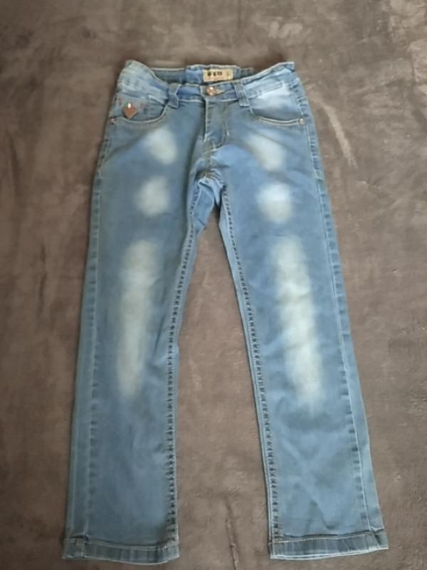 Джинсы размер 128см в хорошем состоянии.Длина 69см пот 28см, в поясе есть утяжка