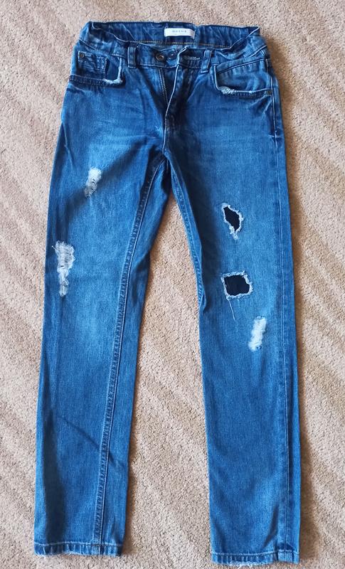 Классные коттоновые джинсы синего цвета на пуговице и застежке молнии,е дефекты, на фото видно,но на самом деле суперовые - без пятен,ное застеранные