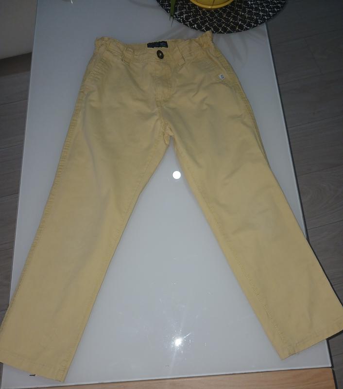 Штани на хлопчика 9-10 років, ніжного, жовтого кольору в гарному стані. На поясі мають резинку, яка дозволяє підкорегувати розмір.
